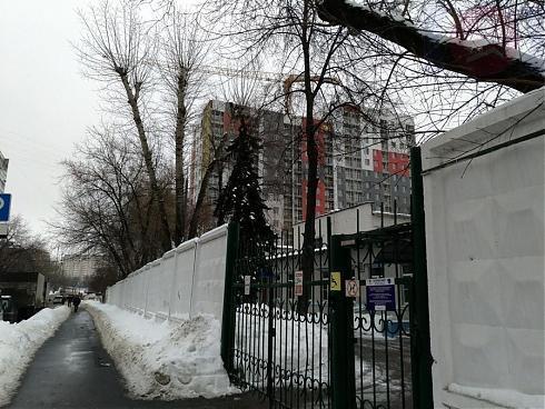 От метро к стройплощадке ведет довольно тихая и узенькая ул. Совхозная.
