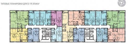Планировки с 5 по 14 этаж – практически такие же, с незначительными отличиями. Так, евро-двушка и евро-трешка приобрели по окну в спальне и превратились в «полноценные» двухкомнатную и трехкомнатную.