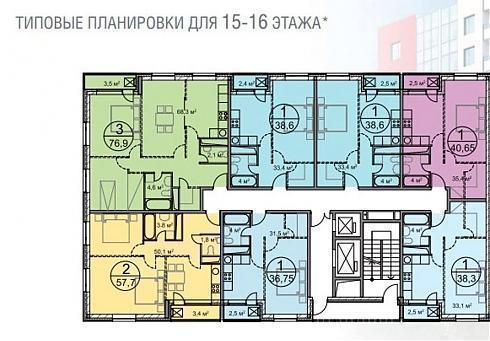 15 и 16 этажи первой секции – почти идентичны нижним этажам.