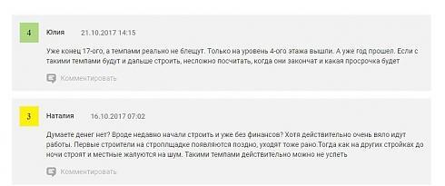 Свежих отзывов от дольщиков ЖК «Атмосфера» и просто интересующихся на форумах нашлось немного. Большинство обсуждений относятся ко времени старта продаж. В 2016-2017 годах, например, активно говорилось о том, что стройка движется медленно и сроки наверняка будут нарушены. Понятно, что сейчас, когда дом фактически достроен, эти разговоры уже не особо актуальны.