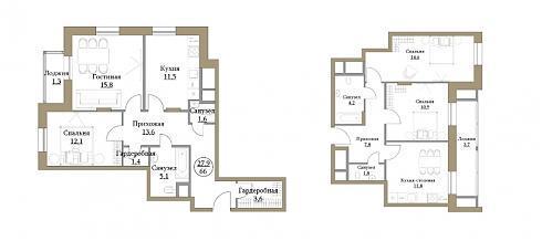 В третьей – нашлось место для двух санузлов и двух гардеробных. А два санузла (основной и «гостевой») есть в каждой двушке.