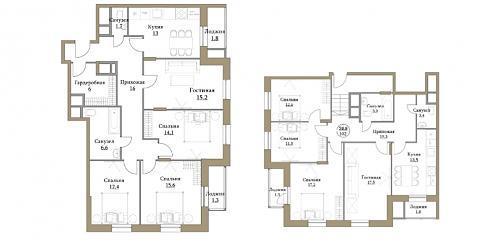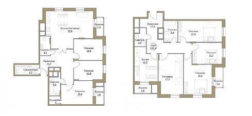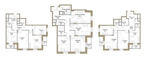 Четырехкомнатных четыре планировки, каждая с двумя лоджиями. Прихожие здесь – от 14.7 до 19.3 квадратов, в некоторых квартирах присутствуют гардеробные.