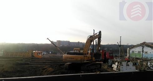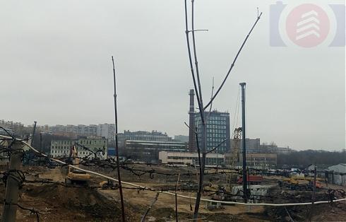 Саму по себе стройплощадку можно разглядеть из-за забора, но смотреть там пока нечего: в ноябре только начались работы по подготовке котлована.