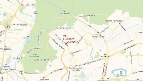 Если вы перемещаетесь на авто, за ориентир можно взять Большую Черкизовскую улицу (от нее до новостройки можно доехать за 5 минут) или Проспект Мира (время в пути – около 15 минут). Сам объект, как уже упоминалось, находится на ул. Краснобогатырской.