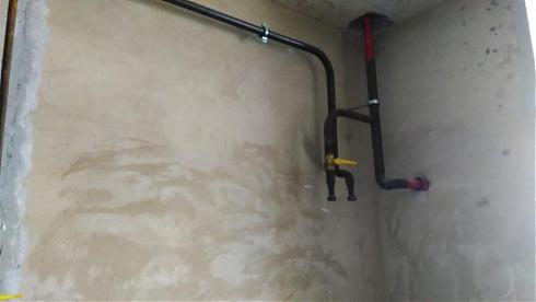 Газовые трубы заведены в квартиры. Одна труба пойдет к плите, другая к газовому котлу.