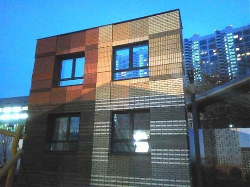 Что касается теплоизоляции, то, по заверениям менеджера, с нею все будет более чем прилично. Наружные стены будут представлять собой 25-сантиметровый монолит, плюс утеплитель, плюс облицовочный кирпич. Кстати, пример такой стены выставлен во дворике возле офиса продаж – можно и посмотреть, и пощупать. На вид – стены вполне приличной толщины.