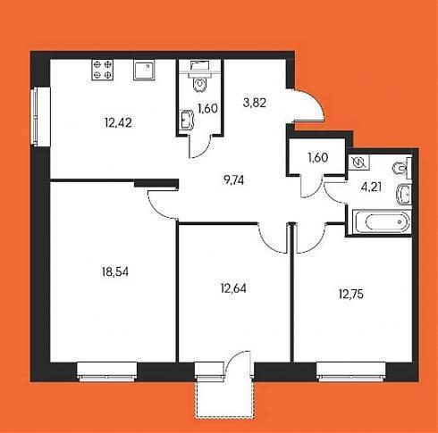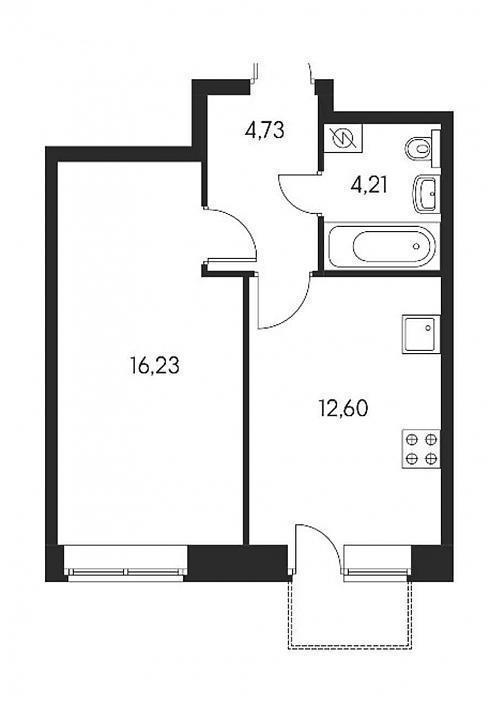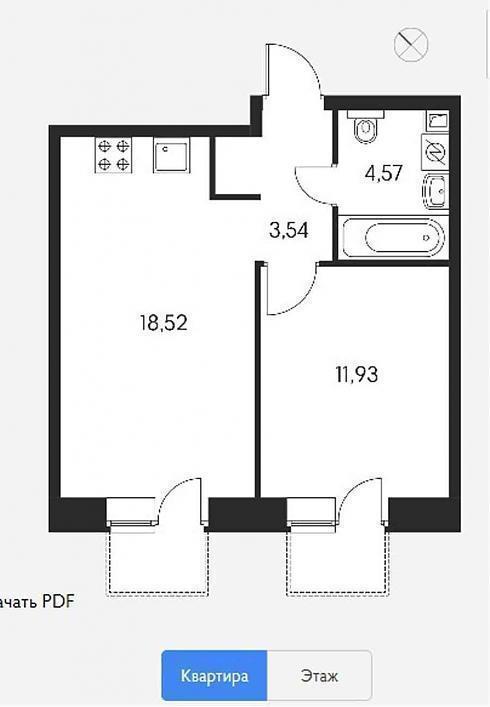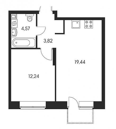 Однокомнатные практически все «стандартные», в районе сорока квадратных метров. Однако есть и нюанс: обычно мы полагаем, что бОльшее из помещений – это комната, а меньшее – кухня.