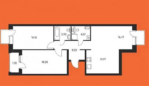 А в данном Комплексе в части квартир все наоборот. Там под кухню-столовую может отводиться помещение в двадцать квадратов, а вот спальни-гостиные имеют скромные 12-14 кв. м. В целом, такую квартиру можно отнести к разряду компактных евро-двушек.