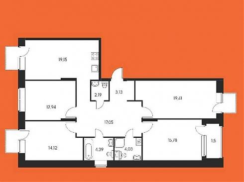 В четырехкомнатных к тому же более чем просторный холл и целых три санузла.