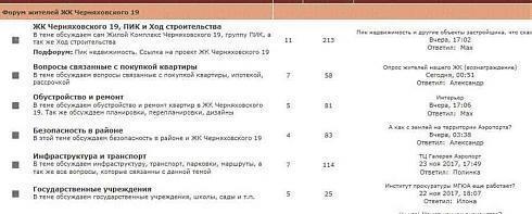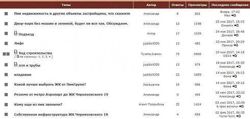 На самом оживленном ресурсе тоже можно найти фото стройки, а также обсуждение темпов строительства, площадей квартир, размеров окон, выбора корпусов и прочего. В целом какой-то уникально новой информации на форуме я не нашла, но в принципе ознакомиться с ним полезно – люди, купившие квартиры, следят за стройкой, ценами и различными тонкостями, например, демонтажом труб вокруг Новостройки.