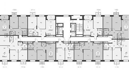 Квартир в секциях разное количество (от 3 до 9, больше всего в первой секции первого корпуса), лифтов – два или три, в зависимости от этажности. Лифты – отечественные, произведены в Щербинке. В каждом подъезде предусмотрено место для консьержки, а также довольно просторный холл, который при желании сможет заменить колясочную (к тому же в подъездах обещают установить камеры видеонаблюдения).