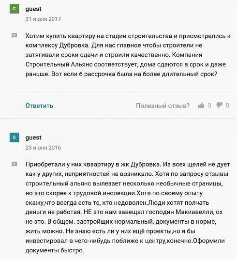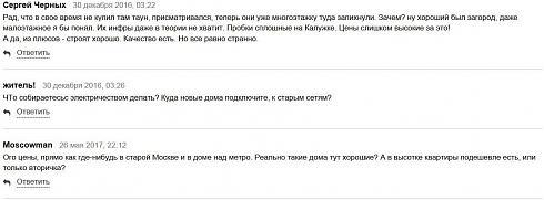 В основном отзывы на форумах о ЖК «Дубровка» положительные. Хотя есть и недовольные, как же без них. Многие форумчане хвалят безопасность, близость к природе, хорошую транспортную доступность Москвы, высокое качество строительства. Порицают же работу управляющей компании, указывая на невысокий профессионализм сотрудников, отмечают недостаток парковочных мест. Еще жалуются на близость Калужского шоссе и его загруженность в часы пик, а также предрекают возможное ухудшение экологии в связи с предстоящим вводом в строй новой автомагистрали Солнцево - Бутово - Видное.