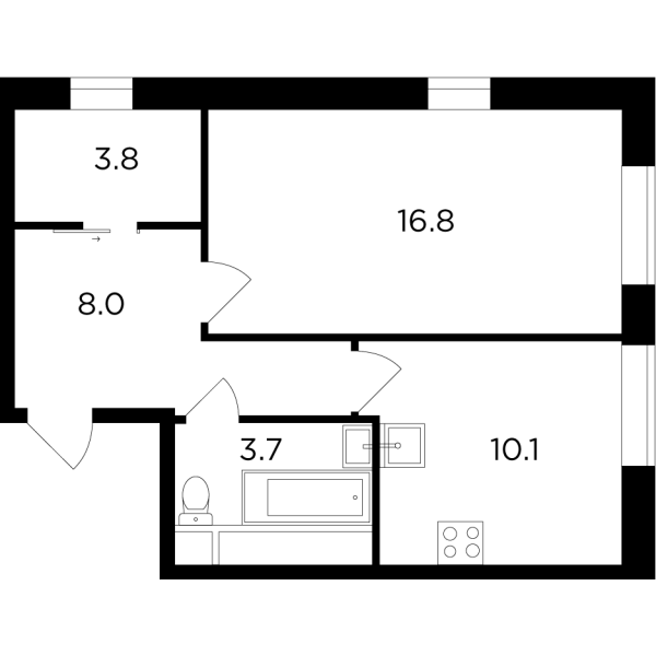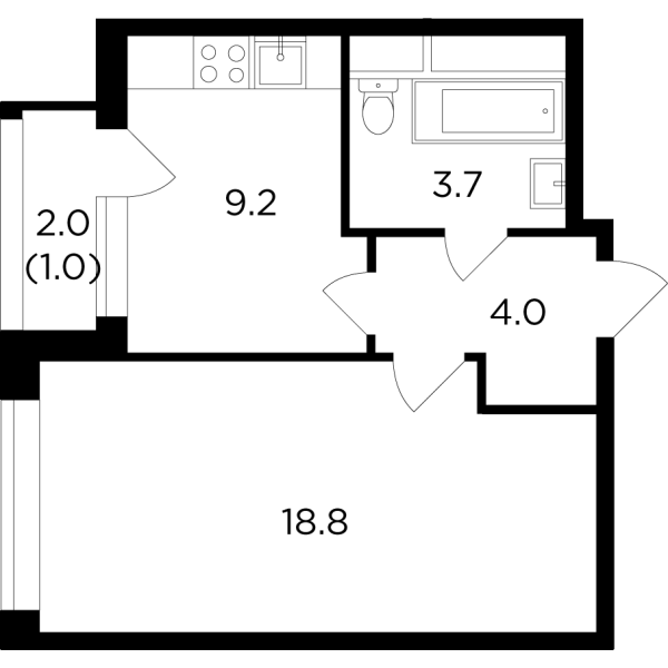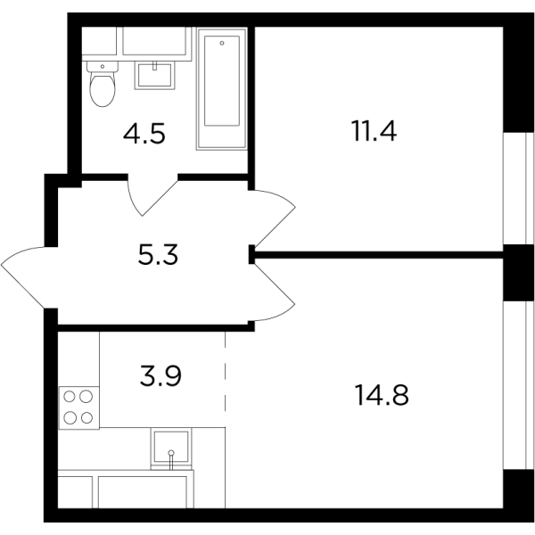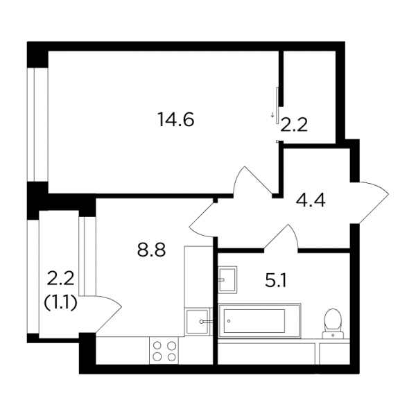 Однокомнатная квартира общей площадью 34,9 кв. м порадует владельца относительно большой кухней и достаточно просторной гостиной-спальней. В комнате есть ниша, где можно установить шкафы. Найдется место и для шкафчика в прихожей.