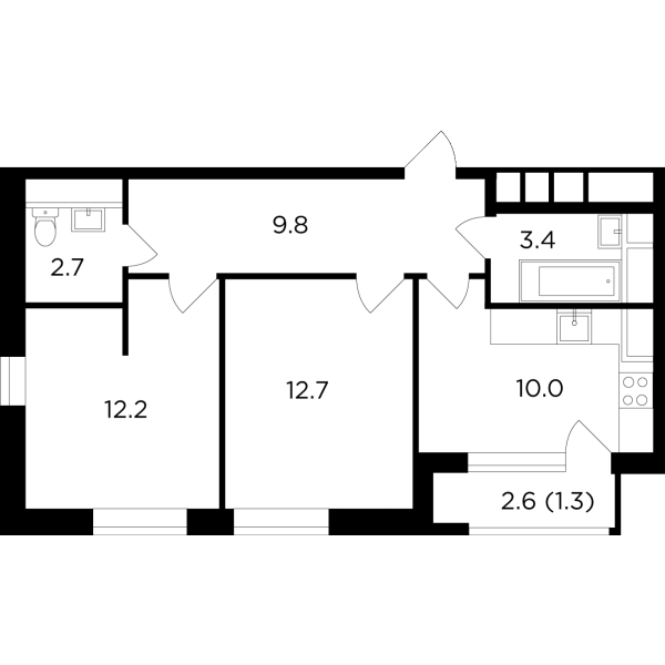 В трехкомнатной квартире общей площадью 80,92 кв. м может с комфортом разместиться семья из четырех человек. Две спальни, просторные гостиная и кухня дают возможность для отдыха и работы всем членам семьи. Два санузла и большая прихожая усиливают ощущение комфорта. Лоджия, правда, совсем маленькая, но она есть и это хорошо.