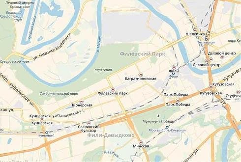 Если смотреть более глобально, то район Филевского парка вполне себе зеленый. Тут есть сам, собственно, обширный Филевский парк, детский парк «Фили», Парк Победы. Для тех, кто предпочитает любоваться видами и водами – набережные Москвы-реки. Картину портят разве что серые пятна промзон и железнодорожные ветки, которые пересекают район извилистыми линиями.