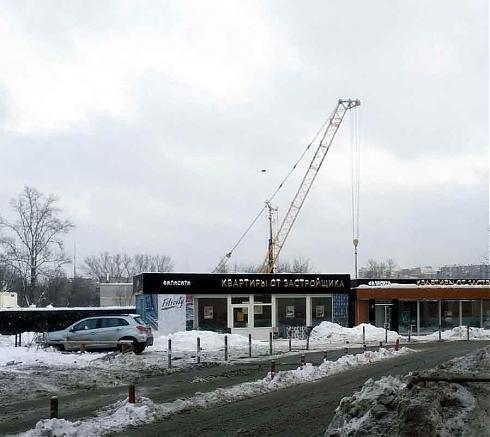 Но вернемся к самому жилому комплексу. Два небольших павильона – офисы продаж – расположились между ТЦ «Филион» и стройплощадкой.