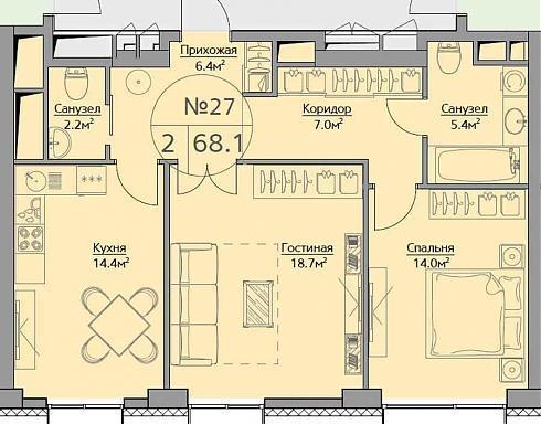 Часть двух-, трех- и четырехкомнатных квартир представлены в «евро»-формате. Сравните, например, однокомнатную и двухкомнатную: