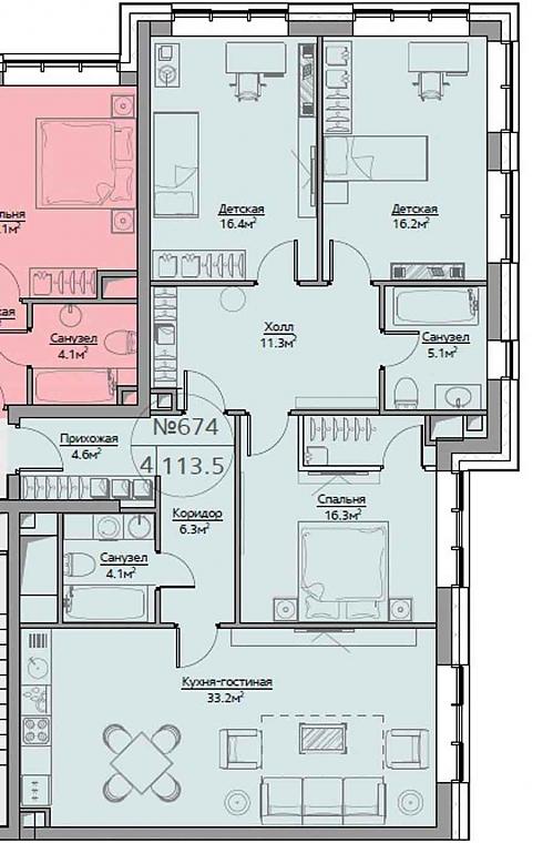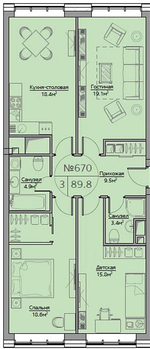 Трех- и четырехкомнатные – распашной либо угловой планировки, одно- и двухкомнатные ориентированы на одну сторону света.
