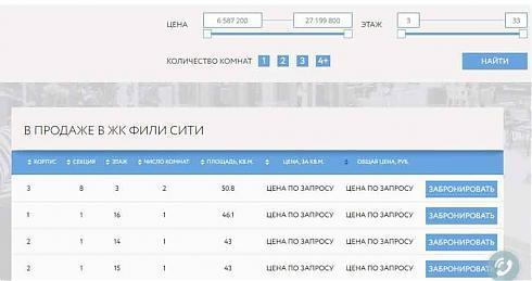 Забегая вперед, скажу, что сам Застройщик квартиры не продает, а доверил это четырем компаниям: S.A.RICCI, «Метриум Групп», EST-A-TET и «БЕСТ-Новострой». Так вот, на сайте «Метриум» (http://www.metrium.ru/novostroyki/novostroyki-moskvy/FilyCity/v-prodazhe/) можно найти выбор по параметрам, но тут пока тоже нет ни цен, ни планировок – только этажи и площади квартир.