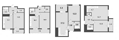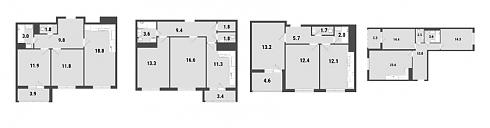 Комнаты, впрочем, в части квартир не особенно большие – от 11.8 до 16 квадратов.