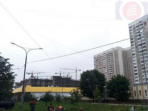 Собственно, от станции подземки строящиеся корпуса рассматриваемого ЖК прекрасно видно. Вот они, краны стройплощадки, на заднем фоне.
