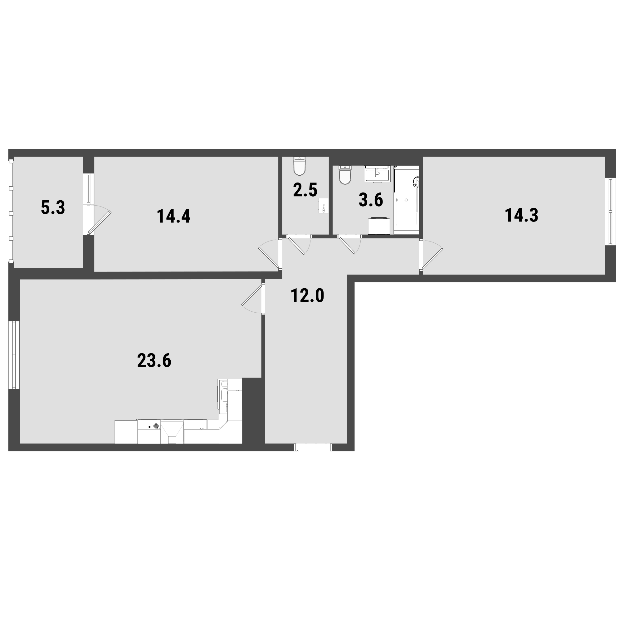 Трехкомнатные представлены в двух вариантах – угловом и распашном. Распашная трешка в евро-формате. В угловой есть необычно расположенная лоджия и два окна в гостиной.