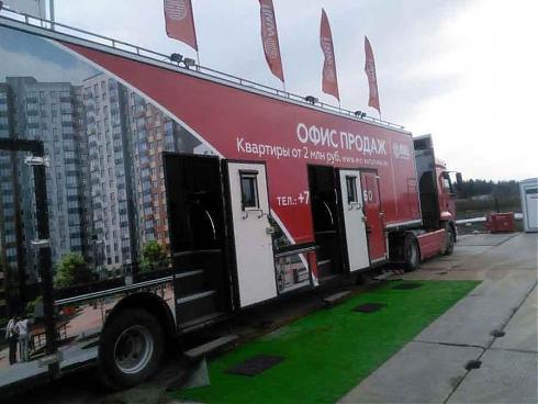 Офис продаж я обнаружила на небольшой бетонированной площадке, и офис этот представлял собой две передвижных киногримерки.