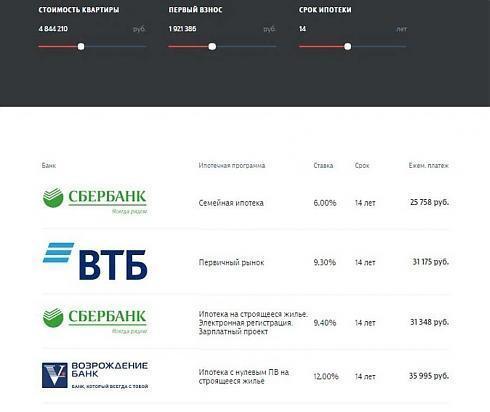 Ипотека предоставляется Сбербанком, ВТБ и банком Возрождение (на сайте Комплекса есть довольно удобный ипотечный калькулятор).