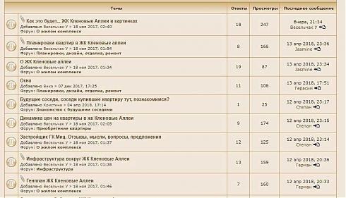 Форумов с отзывами о ЖК «Кленовые Аллеи» в сети нашлось несколько. Один довольно «населенный». Тут много сообщений, есть любопытные темы – например, обсуждение экологической обстановки или архитектурных решений.