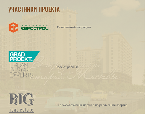 Застройщик – ООО «БИГ Девелопмент» – подразделение холдинга «Еврострой». Архитектурной разработкой ЖК занималась компания «Градпроект» (http://www.gradpro.ru/proekty.html), которая проектировала также гостиницы, бизнес-центры и жилые кварталы в Москве, МО и в других регионах России.