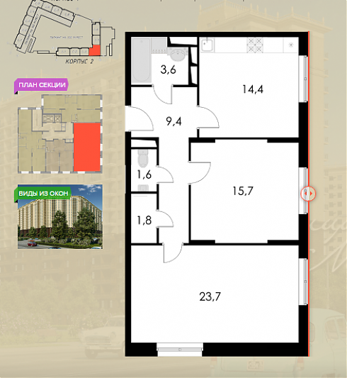 Поскольку стен, кроме несущих, в квартирах нет, некоторые «двушки» (например, в 4 секции 2 корпуса) при желании можно переделать в «трешки», разделив большую комнату с двумя окнами на две небольших.