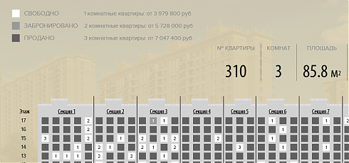 Зато в новой версии портала появилась возможность подбора квартиры по параметрам (этаж, площадь, количество комнат, номер корпуса).