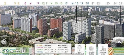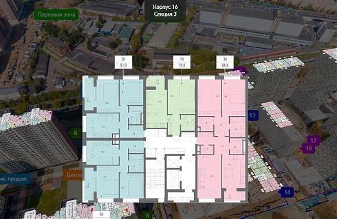 Интересна также вкладка «аэрофотосъемка»: тут можно не только увидеть окрестности новостройки с высоты птичьего полета, но и рассмотреть поэтажные планы корпусов. То есть, кликнув на крышу корпуса, можно прикинуть, какой откроется вид из той или иной комнаты.
