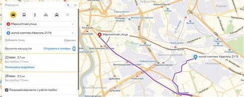 Добраться до «Кварталов 21/19» на автомобиле можно, воспользовавшись Рязанским либо Волгоградским проспектом. Таким образом, от Таганской площади путь займет 15-30 минут, в зависимости от дорожной ситуации.