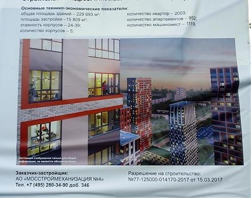 В «свеженькой» проектной декларации на 230 страниц от 03 мая 2017 года застройщиком указано акционерное общество «Мосстроймеханизация № 4», кратко «МСМ № 4». Юридический адрес: г. Москва, ул. Народная, д. 8, а фактически «проживает» общество прямо на стройке, а именно в Москве, на Амурской улице, строение 2, дом 3. Генеральный директор Игнахин К.И.