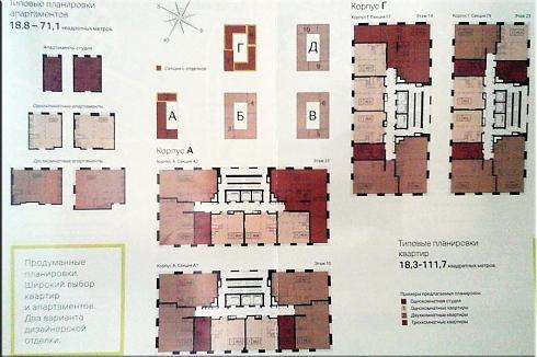 Планировки квартир ЖК «Level Амурская» на его официальном сайте не представлены, придется довольствоваться фотографиями с буклета.