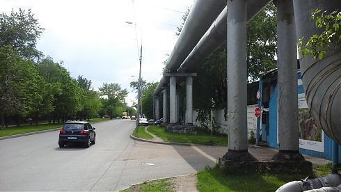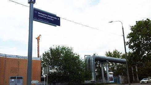 Поворачиваем направо на Амурскую лицу и видим интересный указатель. А через дорогу под страшными трубами теплотрассы баннер «Level Амурская жилой комплекс».
