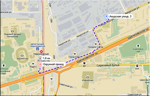 Общественным транспортом. От станции метро «Черкизовская» или МЦК «Локомотив», пройти пешком чуть менее двух километров. Минут за 25 дойдете, но, думаю, что дворами путь будет покороче. Можно несколько остановок проехать на любом троллейбусе или автобусе, следующим по Щелковскому шоссе в сторону области до остановки «ПО Сокол». Не очень, правда, это удобно, так как нужно перейти на другую сторону моста. Обратно ехать/идти удобнее.