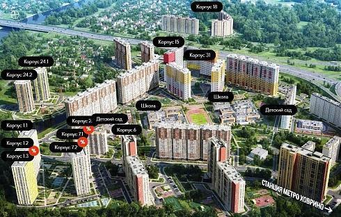 Значительная часть домов, повторюсь, уже сдана в эксплуатацию, часть комплекса заселена, в некоторых только идет заселение. В настоящее время к продаже предлагаются квартиры в корпусах 1.1., 1.2., 1.3., 7.1., 7.2., 6 и 15.