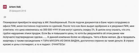 ГК ПИК позиционирует цены на квартиры в своих ЖК, в т.ч. и в «Левобережном», как разумные и адекватные. Если сравнить их с ценами других застройщиков на северо-западе Московской области, то окажется что с этим утверждением можно согласиться. Но многое зависит от района, проекта и качества строительства, которые можно оценить только путем детального анализа параметров каждой квартиры.