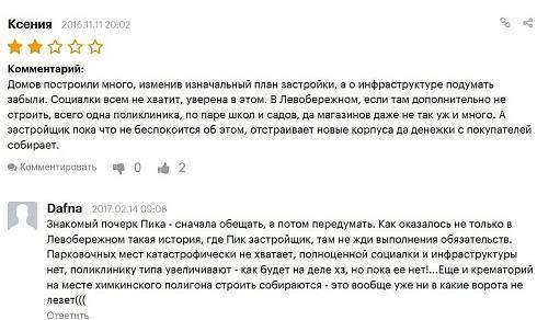 Конечно, каждая компания на своих официальных ресурсах стремится показать себя с наилучшей стороны. Возможно, так оно и есть на самом деле, но истинными ценителями творчества современных зодчих являются те, кто уже живет в созданном ими пространстве и видит плюсы и минусы «сквозь стены» своего жилья. ЖК «Левобережный» посвящено немало отзывов на форумах в интернете. Среди восхищенных голосов раздаются и такие, которые заставляют внимательнее присмотреться к обещаниям застройщика. Есть нарекания к работе менеджеров офиса продаж, которых обвиняют в некомпетентности и равнодушии к покупателям. Есть негативные оценки качества строительства, отмечается недостаточное внимание к просьбам исправить допущенные при строительстве недостатки. Жители микрорайона указывают на слабую обеспеченность парковочными местами, из-за чего в часы пик возникают ожесточенные споры за «место под солнцем». Жалуются, что отсутствие парковок заставляет парковать машины на проезжей части, что, в свою очередь, создает проблемы при выезде из жилого массива. Причем делают акцент на том, что застройщик перегрузил территорию комплекса высотными домами, создав тем самым плановый переизбыток автотранспорта. Вспоминают в отзывах и злополучную свалку, которая, по мнению авторов, дает сильный запах и представляет угрозу для здоровья жителей.