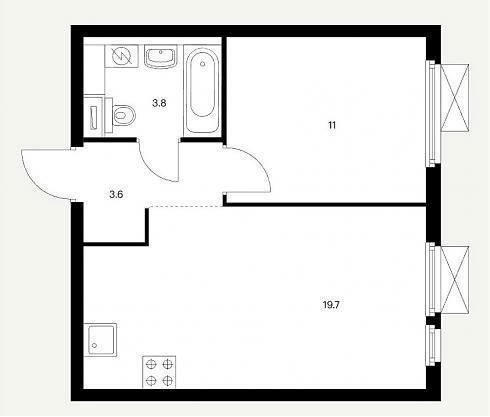 Планировка однокомнатной квартиры 38,1