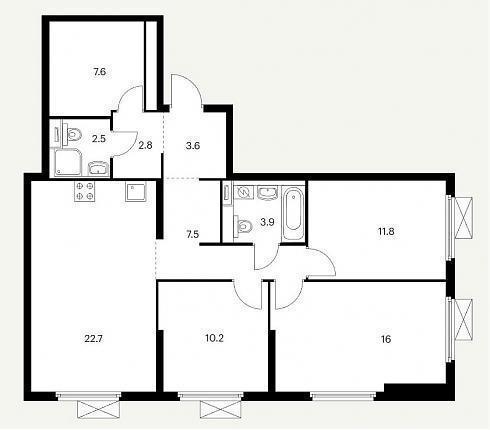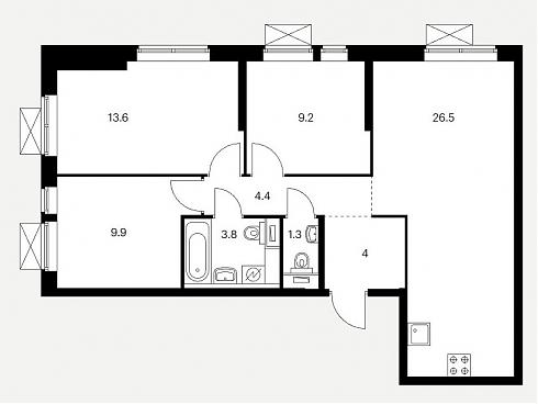 Планировка трехкомнатной квартиры 88,6