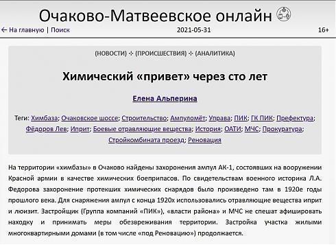 Более того, в Интернете есть информация о том, что на территории застройки находят компоненты химического оружия, которое было захоронено здесь еще сто лет назад.