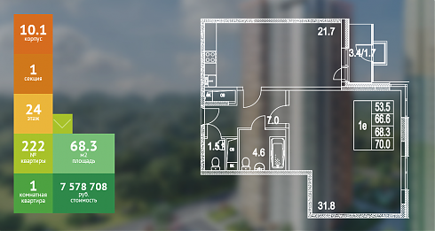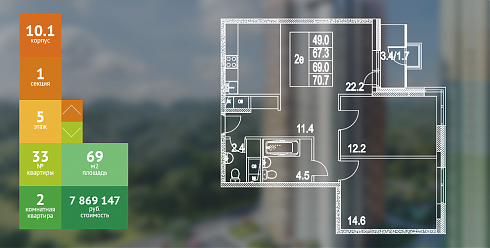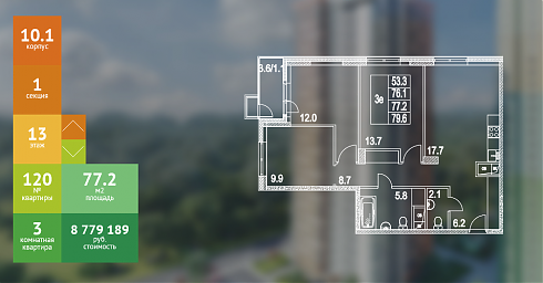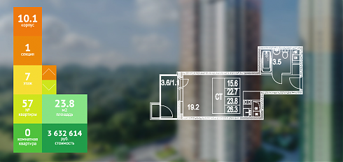 Всего в панельных корпусах 7,8 и 10 продается 2807 квартир, из них однокомнатных 1416, двухкомнатных 909 и трехкомнатных 482. В монолитном одноподъездном корпусе 10.1 всего 225 квартир. Из них студий 44, однокомнатных 45, двухкомнатных 66, трехкомнатных 68 и две четырехкомнатных.