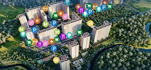 Дома поставлены широко, остается много пространства для детских и спортивных площадок, скверов, пешеходных зон. Однако узнать, будут ли какие-то парки, невозможно. Точно известно только, что одной стороной жилой комплекс будет граничить с большим Новорогским лесопарком. И это хорошо. Если вы выберете квартиру в корпусе 10.1, ваши окна будут смотреть на лес.