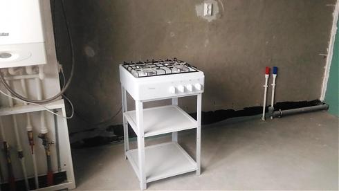 Сдают квартиры с предчистовой отделкой. А это значит, что на полу есть стяжка, электрика разведена до выключателей и розеток, которые уже установлены. На кухне стоит газовая плита (питерского производства), в квартиру заведена холодная вода, под каждым окном радиатор.