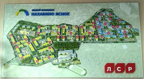 В проектной декларации в качестве застройщика ЖК обозначена АО «ЛСР. Недвижимость-М», учрежденная ПАО «Группой ЛСР», которая владеет 99% акций. И у этой дочки «Группы ЛСР» есть своя история, описанная в декларации. АО «ЛСР. Недвижимость-М» не только строила ЖК «Новое Нахабино», граничащее с территорией нового жилого комплекса, но и многоэтажки в г. Домодедово. Короче, вот такая солидная организация взялась построить небольшой микрорайон рядом с поселком городского типа Нахабино. Всего в генплане, который висит на стене офиса продаж и, конечно, выложен на сайте, обозначен 51 дом, шесть из них трехэтажные, остальные четырехэтажные, трех-, четырех- и пятиподъездные с детским садом на 185 мест и школой на 550.
