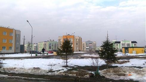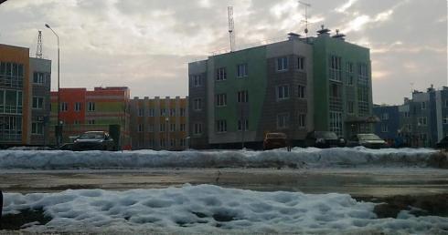 Трехэтажные дома и детский сад за ними
