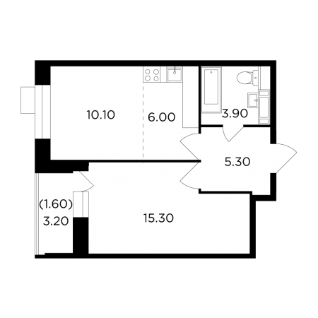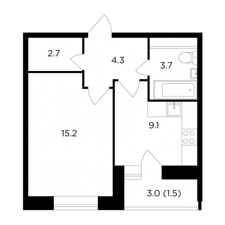 Планировка однокомнатной квартиры 33,1